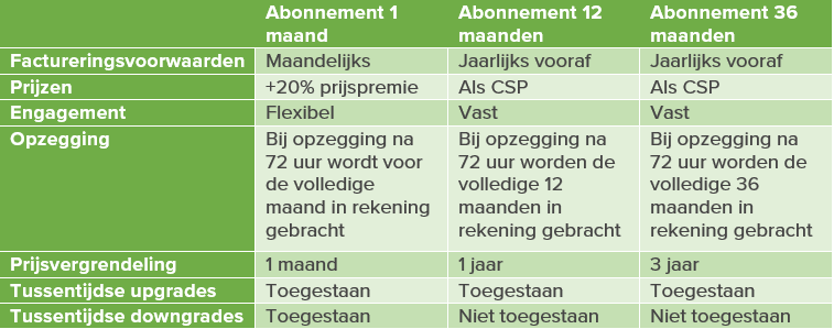 Gedurende de looptijd van een NCE-overeenkomst kan jij extra licenties toevoegen, maar abonnementen kun jij alleen beëindigen aan het einde van de periode van 12 of 36 maanden. Met andere woorden: Microsoft houdt jou aan de afgesproken periode.